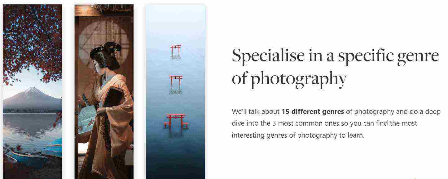 有了关于摄影工艺的重要知识,我们将进入我所说的摄影“艺术”,我们将讨论构图、视觉语言和视觉层次,我们将讨论发展一种风格和发现你的艺术目的,并真正了解我们为什么要做我们所做的事情的内在价值观。